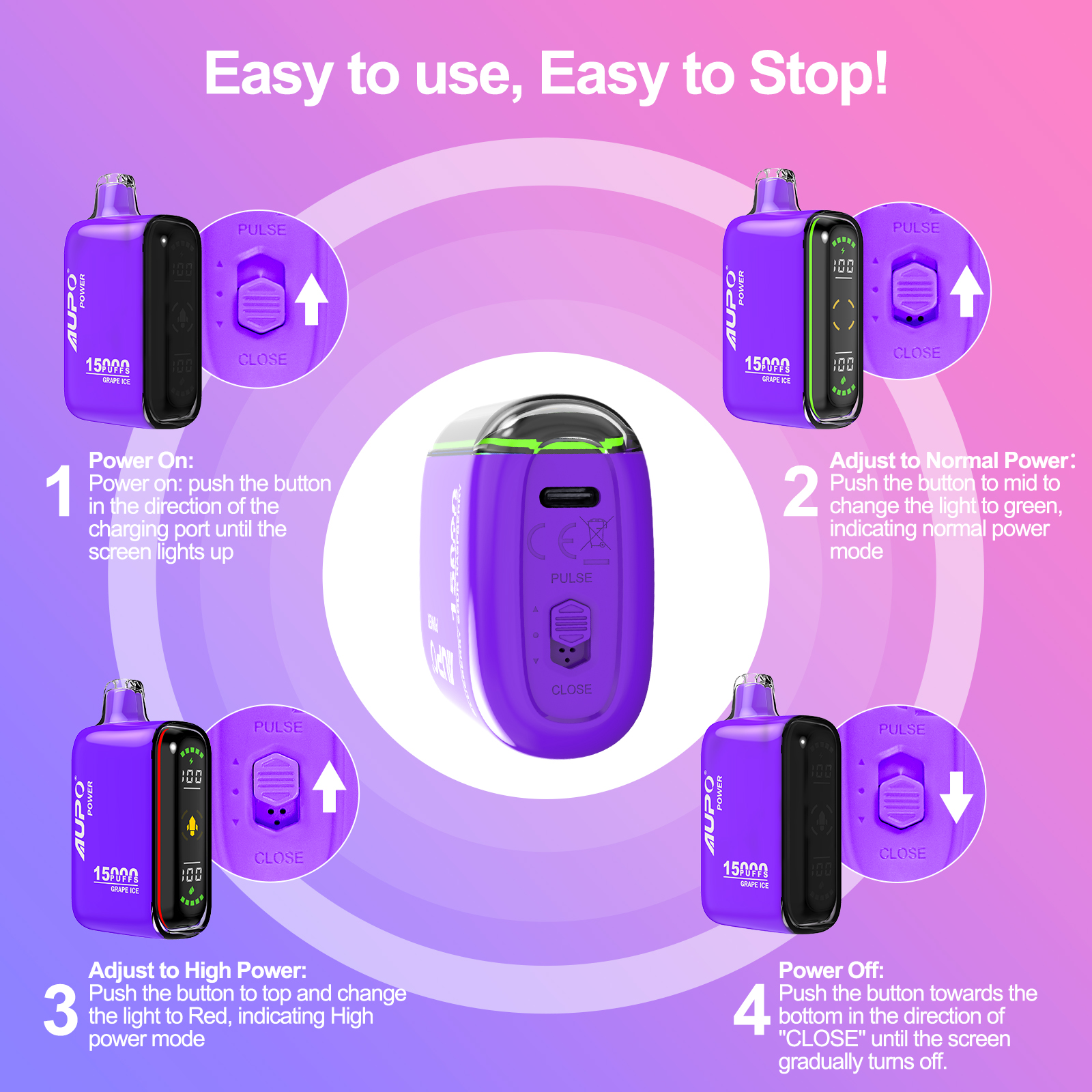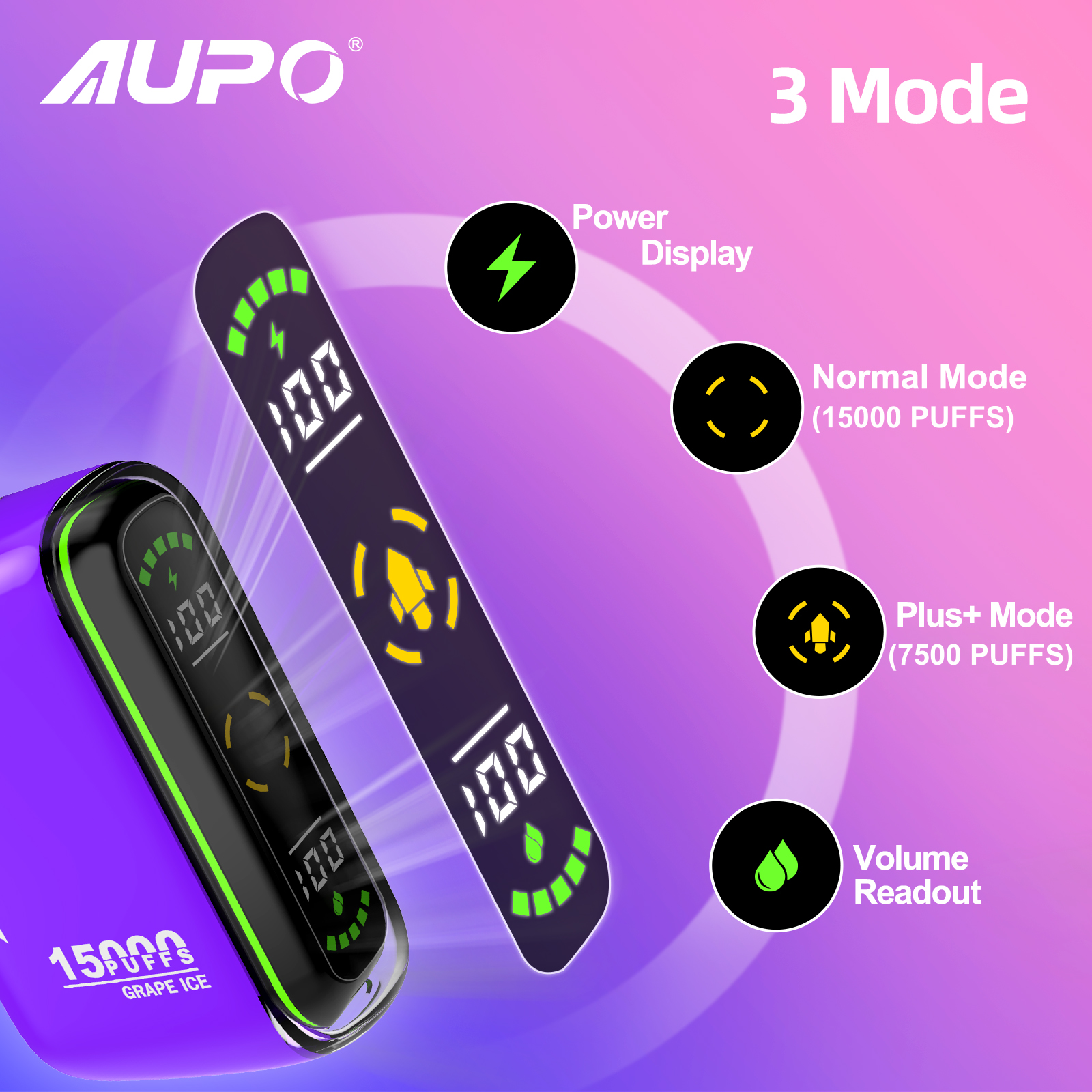 Aupo Vape Disposable 20MG 15000 Puffs 500mah E Cigarette Vape Aromas Fruits With Screen